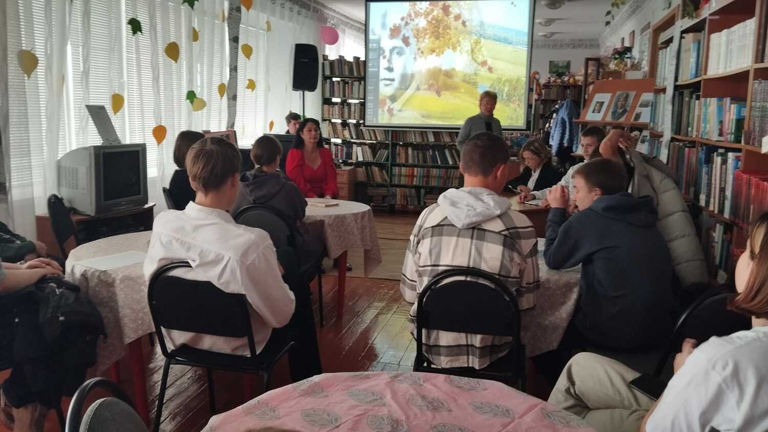 Сергей Есенин - один из самых известных и любимых русских поэтов, чьи стихи проникнуты душевной теплотой, любовью к природе и родной земле. Его творчество отражает жизнь простого народа, а также личные переживания, внутренние конфликты и размышления о смысле жизни. Есенин оставил огромный след в русской литературе, несмотря на свою короткую, но насыщенную судьбу. В его стихах встречаются темы, которые остаются актуальными и близкими людям и сегодня. Началось мероприятие песней «У Есенина день рождения». Библиотекарь Нефедова Л.П. и ведущие вечера Ершов Д и Бастричева А. с помощью презентации познакомили присутствующих с жизнью и творчеством поэта. Чтецы: Аржанов Г., Сиротин А., Сипков И., Чичулин Г., Былев Л., Бастричева А. прочитали стихи поэта «Письмо матери», «Шаганэ ты моя, Шаганэ!», «Я покинул родимый дом», «Черемуха» и другие. Творчество Сергея Есенина обладает высокой музыкальностью, что позволило многим композиторам создавать музыкальные произведения на его стихи. Прозвучали песни, рождённые из есенинских стихов: «Не жалею, не зову, не плачу», «Отговорила роща золотая…». Солистка творческого объединения любителей эстрадной песни «Триумф» Галина Убийко очень проникновенно исполнила романс на стихи С. Есенина «Клен ты мой опавший…» В заключении учитель русского языка и литературы Кузнецова В.Н. отметила, что каким бы Есенин не был, про то пусть пишут критики. Для нас же Сергей Есенин есть и будет самым большим и чистым русским поэтом.